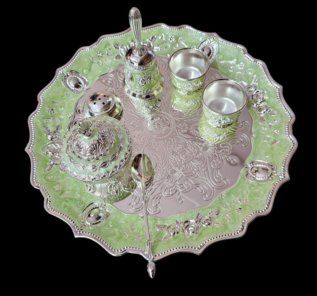 German Silver Enamel Coated Pooja Thali for wedding Hampers Wedding Return Gifts